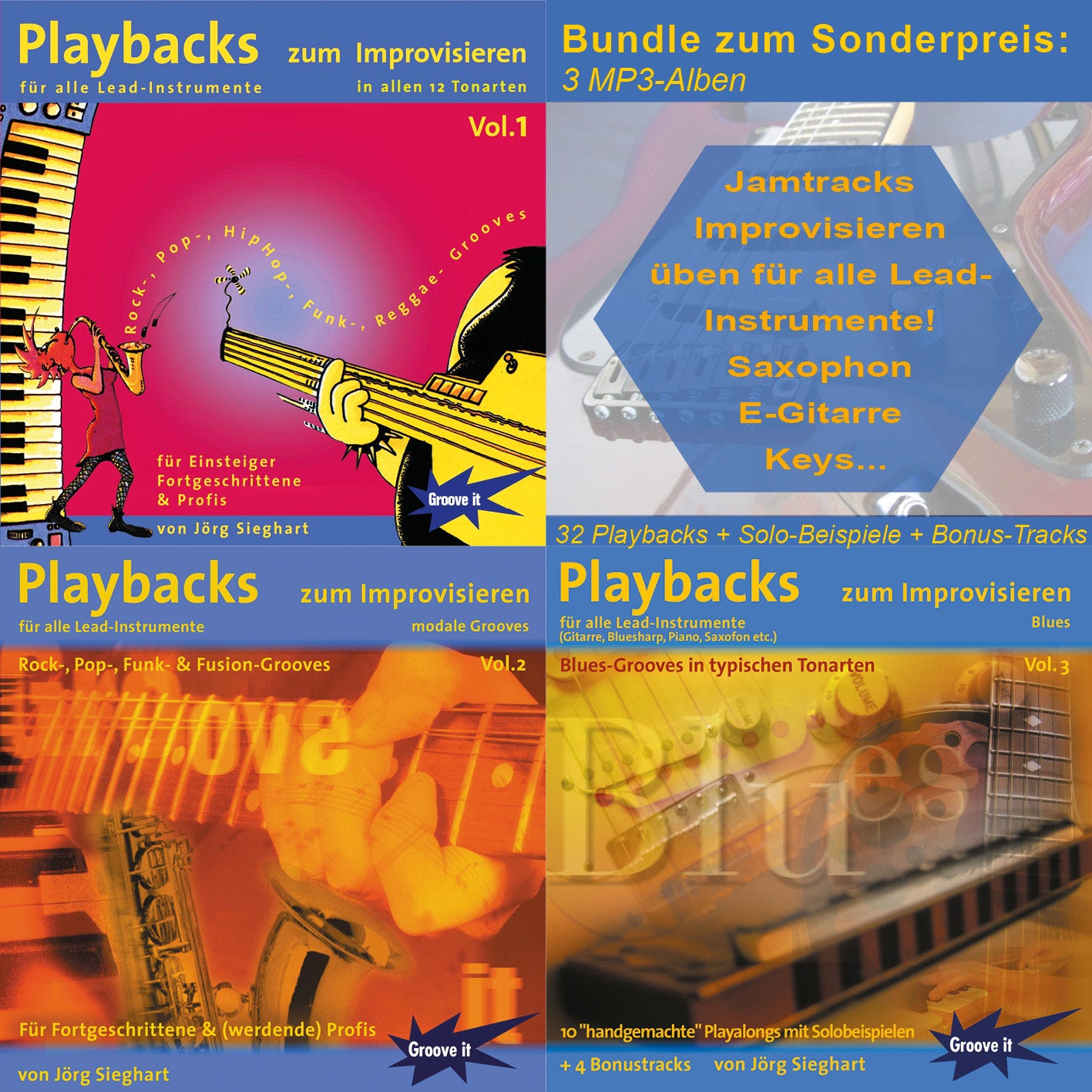 Dann ist mein Playbacks zum Improvisieren Bundle (3 Alben!) für dich genau das Richtige! Denn hier kannst du systematisch in ALLEN 12 Tonarten üben sowie in allen 7 "Modes", plus in diversen Blues-Stilistiken mit Tracks in verschiedenen Tonarten. So kommst du wirklich voran und drehst dich nicht im Kreis... am 25. oder 26. Dez. statt 29,90 (Bundle-Preis) für nur 14,90 €! Nutze dafür den Rabatt-Code "BlackSolo25" und trage ihn ins Gutscheinfeld des Bestellformulares ein.