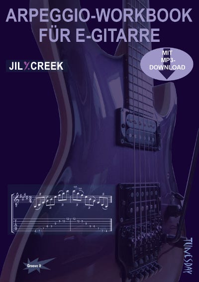 3, Arpeggien sind das Salz in der Suppe eines jeden Gitarrensolos! Daher habe ich als drittes Buch das "Arpeggio Workbook für E-Gitarre" meiner Kollegin Jil Y. Creek (die gemeinsam mit mir am American Institute of Music in Wien studierte und die zahlreichen Lesern von "Gitarre & Bass" auch wegen ihrer früherer Kolumnen dort bekannt sein düfte) mit dazugepackt.