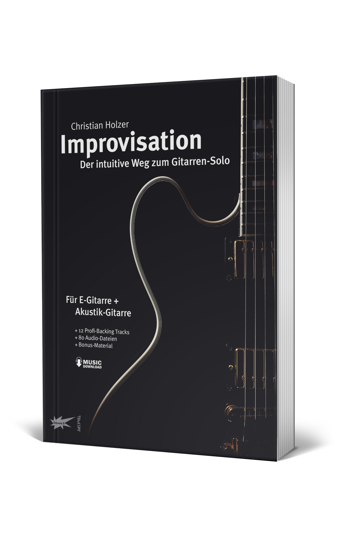 2, Als Nächstes sind fundamentale Grundkenntnisse der Harmonielehre und Tonleitern etc. essenziell, wenn man frei von der Leber weg improvisieren möchte. Dazu habe ich den 267 (!) Seiten Schmöker meines Gitarrenkollegen Christian Holzer "Improvisation - der intuitive Weg zum Gitarrensolo" mit in dieses E-Gitarre Bundle hereingenommen. Es ebnet dir die musiktheoretischen Grundlagen mit allen Fingersätzen, vielen Tipps und Playalongs etc. zum Improvisieren auf der E-Gitarre.